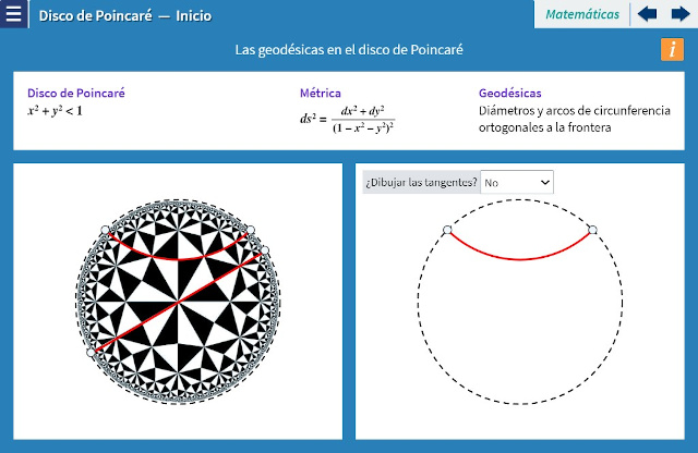 Objetivo: Se plantea el modelo geométrico bidimensional denominado "El disco de Poincaré": interior del círculo, en el que las geodésicas son arcos de circunferencias euclídeas ortogonales a su frontera. Se muestran los objetos básicos en el disco de Poincaré: los segmentos, circunferencias, ángulos y sus particularidades para el observador euclídeo. Se comprueba que la suma de los ángulos de un triángulo en el disco de Poincaré es inferior a $180º$ Finalmente se muestra que la geometráa del disco de Poincaré no es una geometría euclídea, es decir, hay otras geometrías.