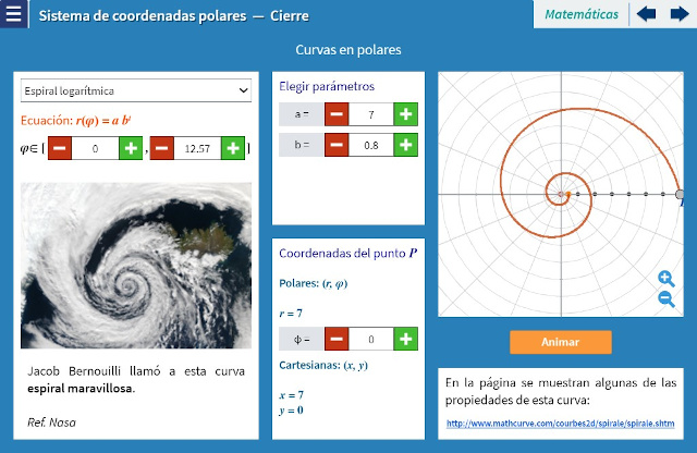 Objetivo: El objetivo de esta unidad es mostrar el sistema de coordenadas polares en el que se fija un punto $O$ llamado polo y un segmento horizontal que parte de este punto llamado eje polar. Cada punto $P$ queda fijado por la distancia de $P$ al polo ($r$) y el ángulo que determina el segmento $OP$ con el eje polar ($θ$).