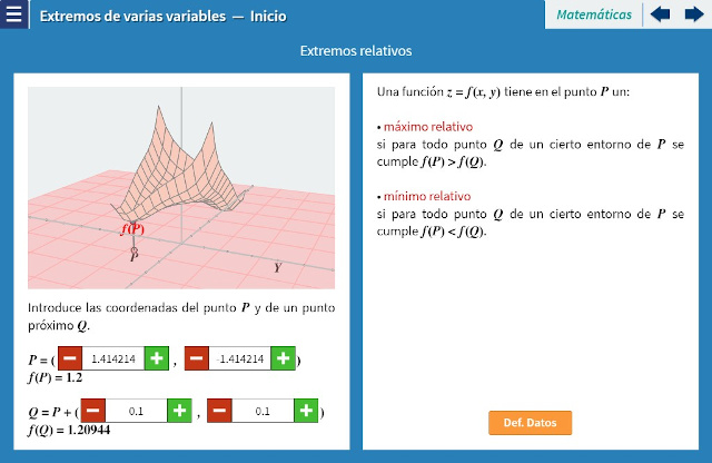 Objetivo: Se aborda el problema de encontrar los máximos y mínimos relativos de una función de varias variables. Se pretende: