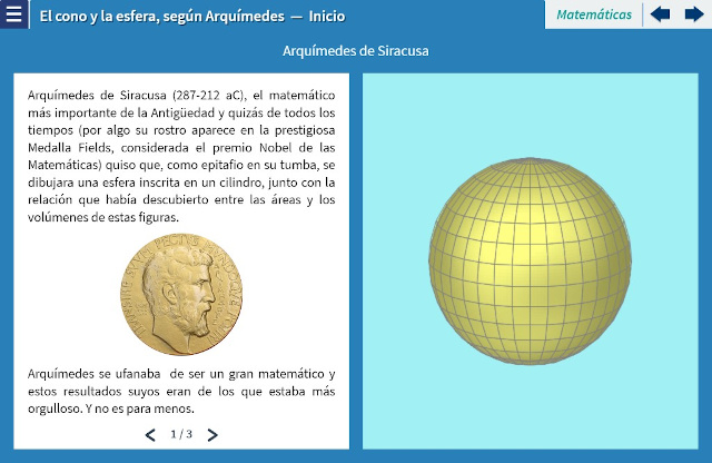 Objetivo: En esta unidad se presentan la esfera y los sectores de un cono circular recto que forman una cubierta ajustada de la esfera. Se evidencia que al hacer dichas secciones más finas, éstas se ajustan muy precisamente a la esfera, por lo que el cálculo de la superficie de la esfera puede hacerse utilizando las secciones del cono cuya área puede calcularse. Adicionalmente, se hace la observación de que los sectores cónicos comparten el área de un cilindro con igual altura y un radio igual al radio medio del sector, así pudiendo relacionar el área de la esfera con la del mínimo cilindro que la contiene, que por cierto es el resultado del cual Arquímedes se sentía más orgulloso.