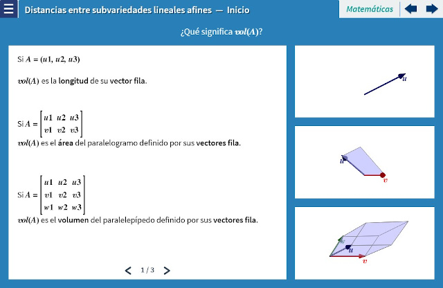 Objetivo: Se presenta la fórmula para calcular el $m$-volumen. Una sola fórmula para encontrar las distancias entre puntos, rectas, planos o cualquier par de subvariedades lineales afines de $ℝ^m$.