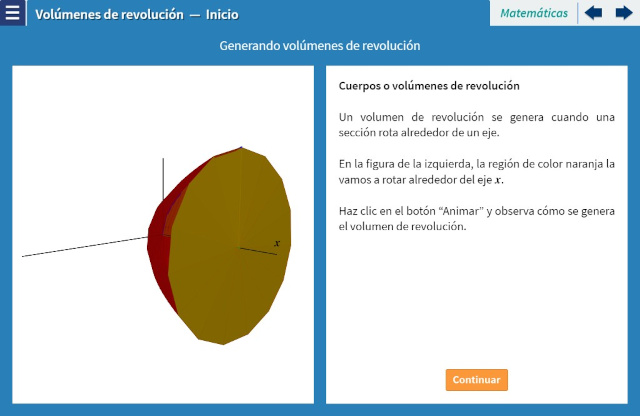 Objetivo: Una de las aplicaciones de la integral definida es el cálculo del volumen de un sólido de revolución, que se obtiene al rotar una región del plano alrededor de una recta de ese mismo plano. En esta unidad se busca el logro del siguiente objetivo: “Calcular volúmenes de revolución generado por el giro alrededor del eje $OX$ de la región limitada por una o dos funciones”.