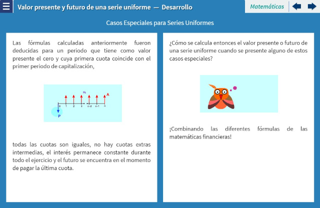 Objetivo: Identificar y aplicar los conceptos relacionados con el cálculo de una operación financiera que tiene como característica pagos uniformes iguales y periódicos, utilizando para ello videos, actividades interactivas y solución de problemas.