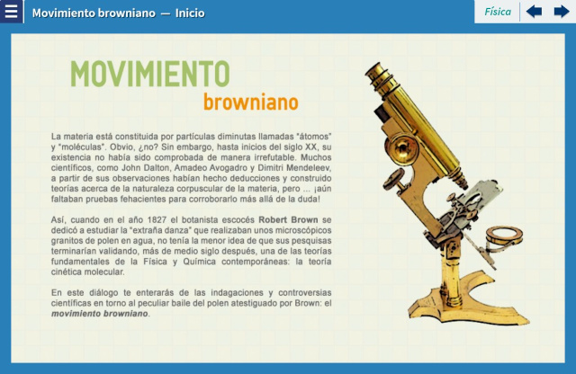Objetivo: A través de una conversación con un tutor digital y la exploración simultánea de modelos interactivos y simulaciones, el estudiante hará observaciones, formulará hipótesis y realizará inferencias con el objeto de entender el movimiento browniano, así como su papel en la corroboración del modelo cinético de los fluidos y la naturaleza corpuscular de la materia. Asimismo, comprenderá la importancia del trabajo de Albert Einstein en la explicación de dicho fenómeno.