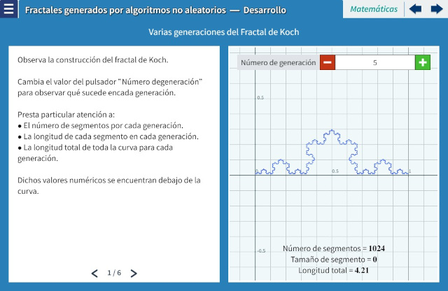Objetivo: En esta unidad se presentan principalmente los fractales de Koch, Hilbert, y la isla de Gosper con el objeto de introducir al alumno las dos propiedades de los fractales: autosimilitud e invarianza de escala. Adicionalmente, se analiza la divergencia de la longitud de las curvas si se consideran sólo unidimensionales, justificando así la necesidad de considerar dimensiones distintas para la curva, que no necesariamente han de ser enteras. A pesar de considerarse sólo fractales diseñados, se deja abierta la posibilidad de considerar dimensión fractal para fractales “experimentales”, mismos que se abordan en otra unidad.